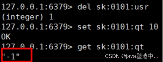//增加乐观锁 jedis.watch(qtkey); //3.判断库存 String qtkeystr = jedis.get(qtkey); if(qtkeystr==null || "".equals(qtkeystr.trim())) { System.out.println("未初始化库存"); jedis.close(); return false ; } int qt = Integer.parseInt(qtkeystr); if(qt<=0) { System.err.println("已经秒光"); jedis.close(); return false; } //增加事务 Transaction multi = jedis.multi(); //4.减少库存 //jedis.decr(qtkey); multi.decr(qtkey); //5.加人 //jedis.sadd(usrkey, uid); multi.sadd(usrkey, uid); //执行事务 List<Object> list = multi.exec(); //判断事务提交是否失败 if(list==null || list.size()==0) { System.out.println("秒杀失败"); jedis.close(); return false; } System.err.println("秒杀成功"); jedis.close();