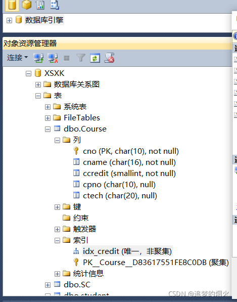 主键:cno 索引: cno (升序)+ccredit(降序)