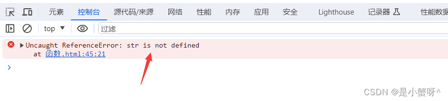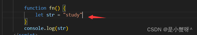 在下述代码中,在函数内部定义了一个变量 str, 在函数外部使用时,会报错