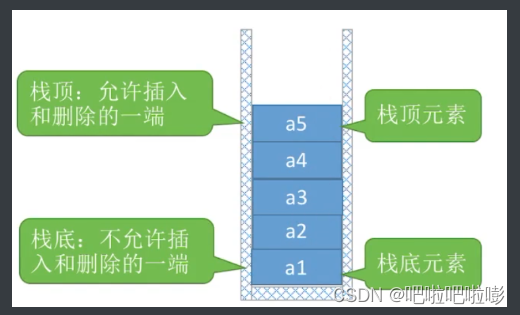 重要术语:栈顶、栈底、空栈: