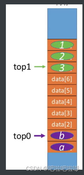 如图,top0从下往上存储,top1从上往下存储。