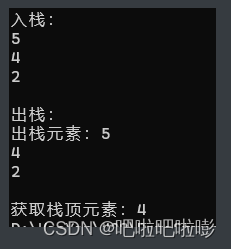 printf("获取栈顶元素:%d",x );