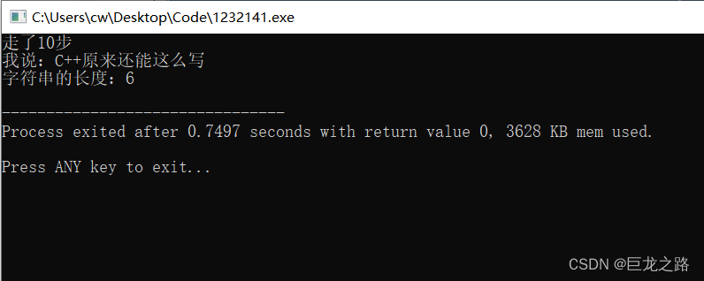 std::cout<<"走了"<<n<<"步"<<std::endl;