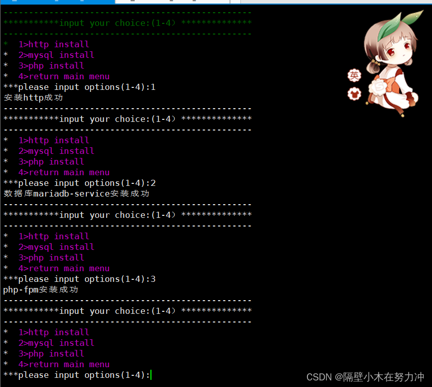 shell脚本实现多级菜单的编写 37m 天藍底白字\e[0m"37m 紅底白字\e[0m"37m 綠底白字\e[0m"37m 紫底白字\e[0m"echo -e "\e[1;echo -e "\e[30m 黑色字\e[0m"echo -e "\e[32m 綠色字\e[0m"echo -e "\e[33m 黃色字\e[0m"echo -e "\e[34m 藍色字\e[0m"echo -e "\e[35m 紫色字\e[0m"echo -e "\e[36m 天藍字\e[0m"echo -e "\e[37m 白色字\e[0m"