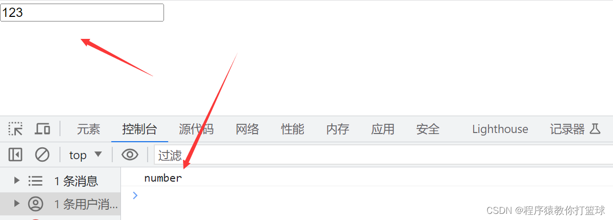 input 输入 123,按回车查看类型: