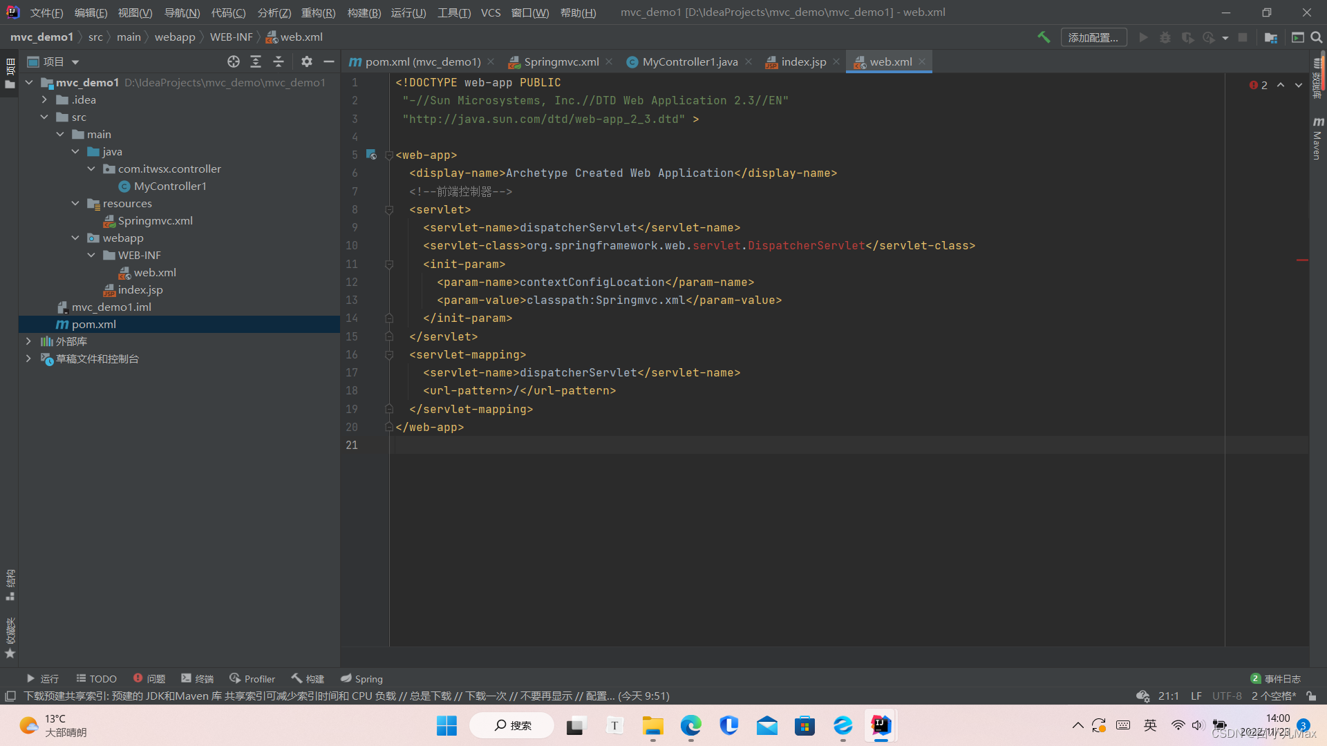 SpringMvc引入依赖时版本问题 Springmvc引入spring依赖时,当版本是5.2.12.RELEASE时,web.xml可以解析前端控制器dispatcherServlet。当版本是5.3.24时,web.xml无法解析前端控制dispatcherServlet。