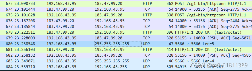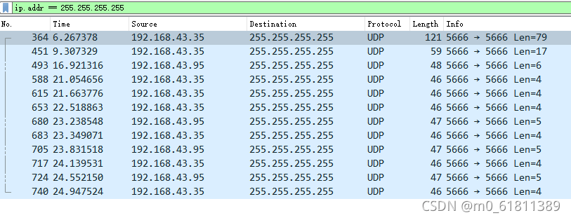 5.使用筛选器将目的地址设为255.255.255.255(ip.addr == 255.255.255.255)