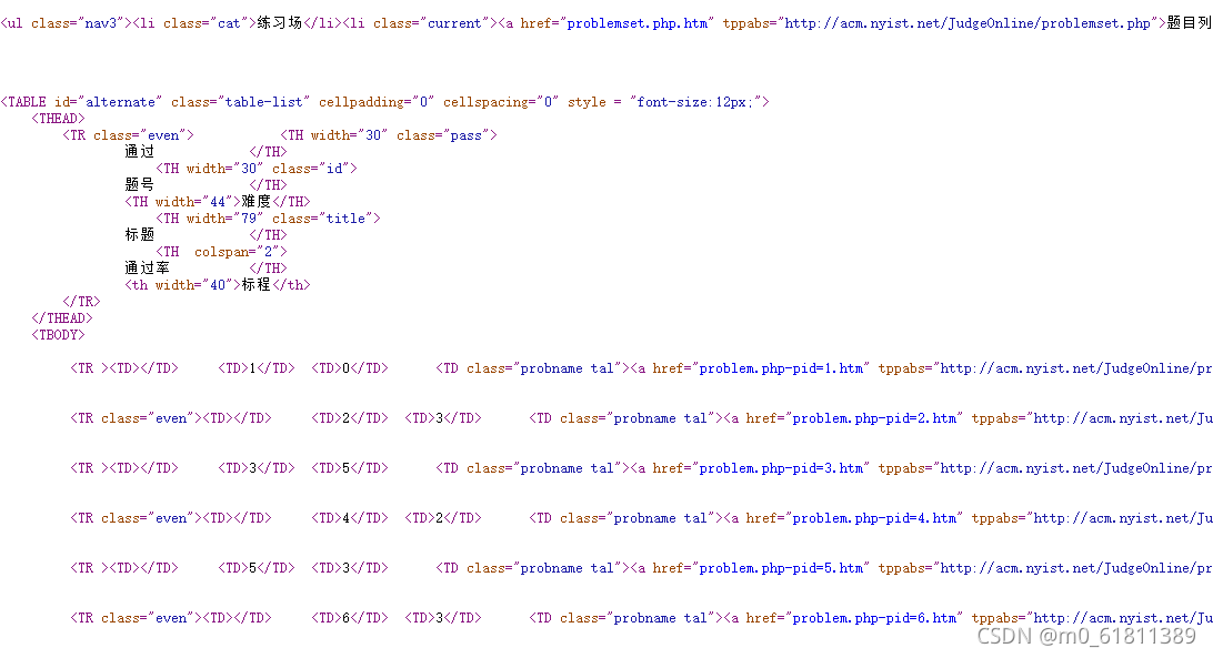 1.打开网页http://www.51mxd.cn/problemset.php-page=1.htm,查看页面源代码(点击鼠标右键,选择页面源代码)
