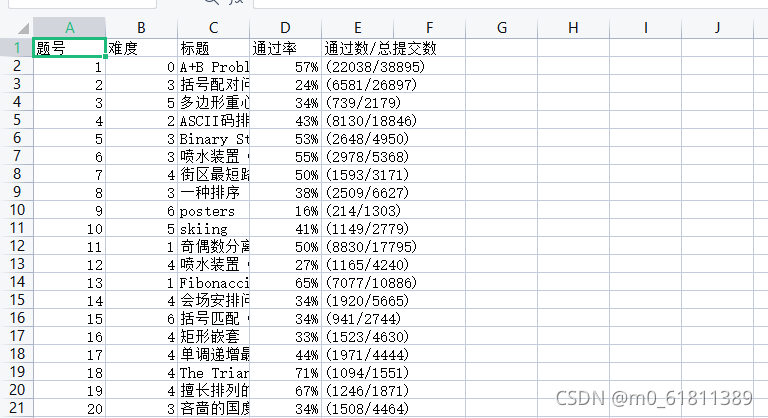csvHeaders = ['题号', '难度', '标题', '通过率', '通过数/总提交数']