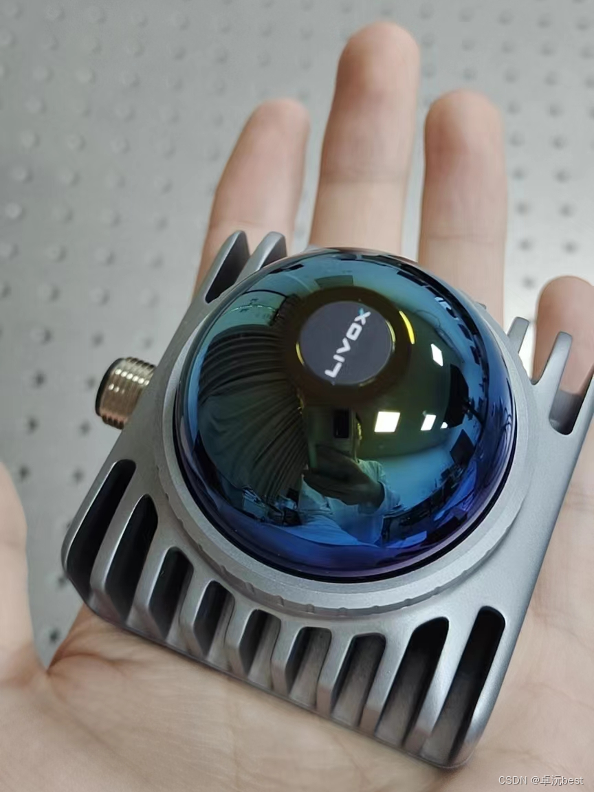 livox mid360样貌大小如下,上面就只有一个m12的12芯航空插头公头,也就是说数据和电源都是从一个口子进入。