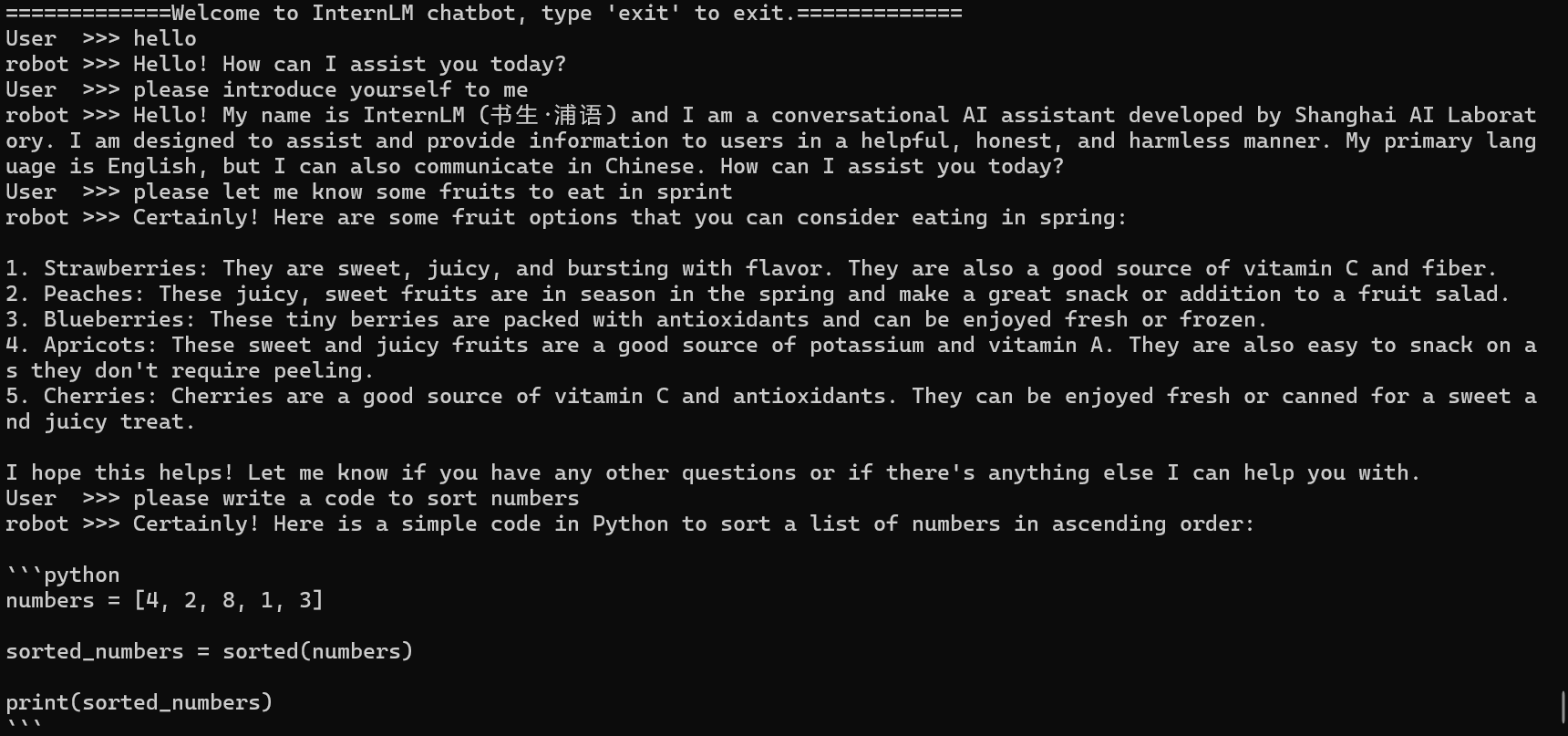 和上面的对话Demo使用相同的模型InternLM-chat-7b -