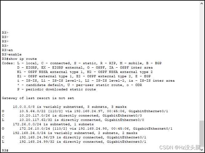 查看路由表----------------------->R1#show ip route