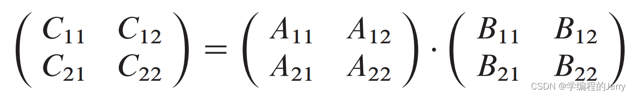 5 else partition A,B,and C as in equations //将三个矩阵各自分成4个部分