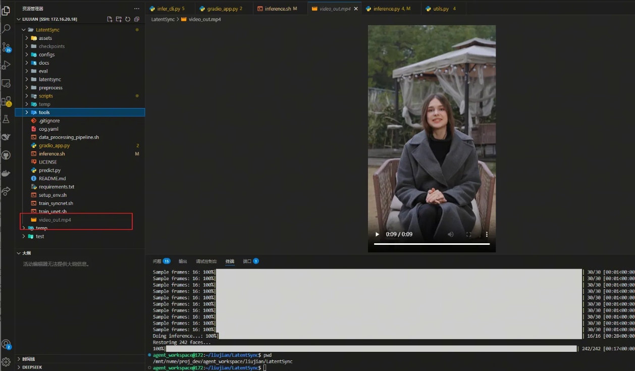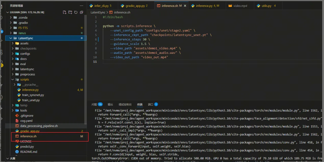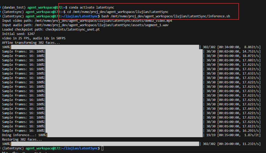 进入工作目录:cd /mnt/nvme/proj_dev/agent_workspace/liujian/LatentSync