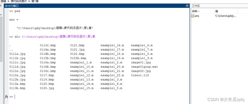 1、用MATLAB操作系统命令显示当前工作目录并显示当前目录下的文件。