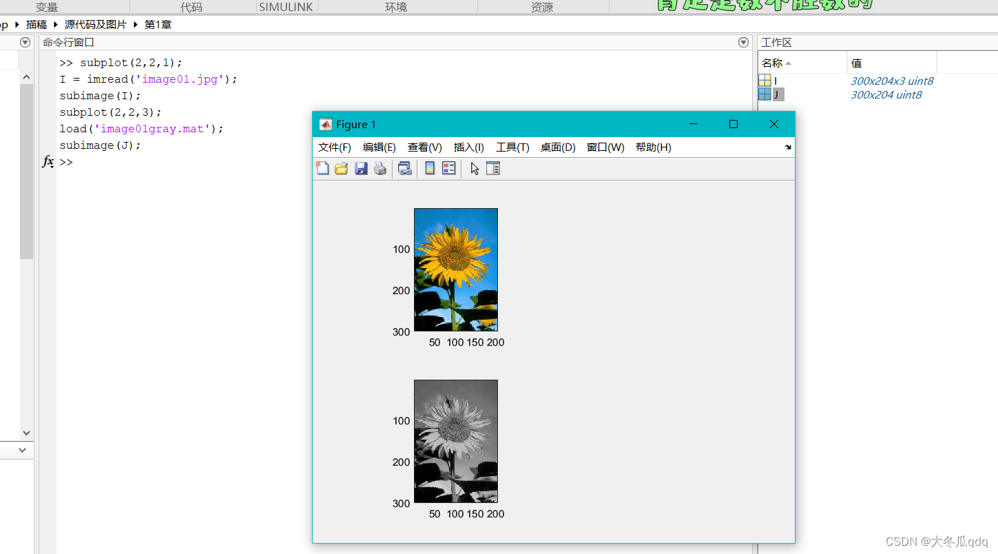 - 6)subimage函数:在一个图像窗口中显示多个图像。