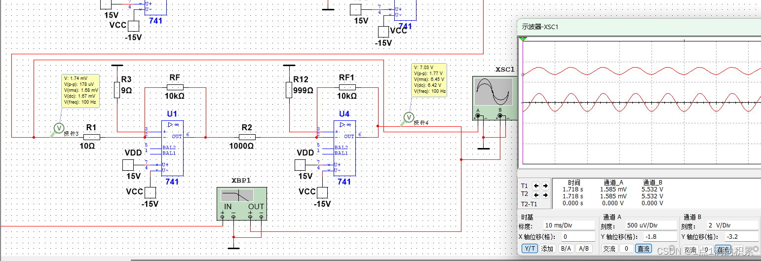 输出要求: 滤除50Hz干扰,放大100Hz信号到1-5V