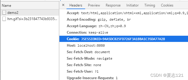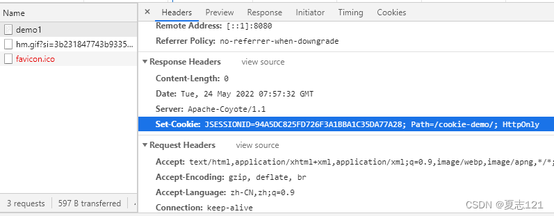 关闭浏览器后重新访问demo1的浏览器开发者工具显示: