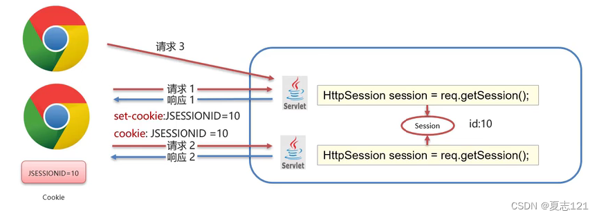 JavaEE提供HttpSession接口,来实现一次会话的多次请求间数据共享功能