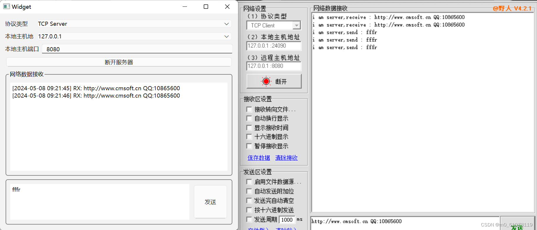 14、编译代码,运行成功,可以成功收发数据
