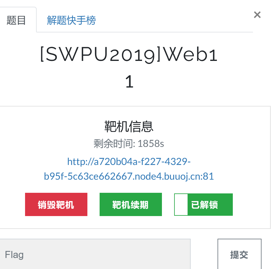 BUUCTF之 [HCTF 2018]admin BUUCTF之 [HCTF 2018]admin-----这里的ckj123等下使用脚本时是需要用来作为参数的。刚刚以 1 用户登进去后给了个session源代码的意思是:用户如果以admin的身份登录,就直接可以拿到flag了,所以直接注册账号为admin,密码为123就成功拿到flag了。如果使用脚本的话,就需要伪造session为admin登陆的时候。使用脚本解密,脚本命名为session解密.py运行得到:得到如下:将name的值修改为admin,重新用脚本在进行加密。