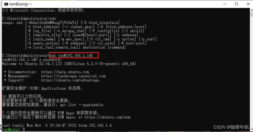 ssh 用户名@IP