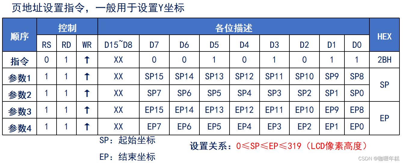RS(数据/命令):RS信号用于区分当前的操作是读写数据还是读写命令。当RS为低电平时,表示当前是写入命令;当RS为高电平时,表示当前是写入或读取数据。因此,RS信号也被称为DC信号(Data/Command)。