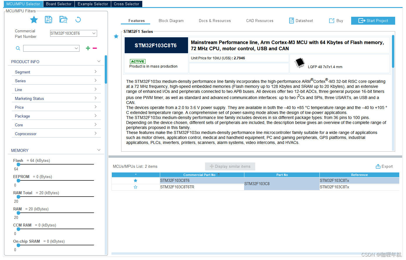 1、打开CubeMX以后,选“通过MCU选择器来建立新项目”