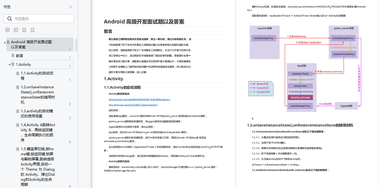 所以我根据自身的一个面试经历,和对网上大厂面试题目及答案的查找与收集,最终将其整合成一份 Android 高级开发面试题及答案解析 文档;有需要这份面试题及答案解析的朋友 ;可以私信发送 “面试” 即可 免费获取 希望这份面试题能够帮助大家更好的冲击这次的面试高潮季