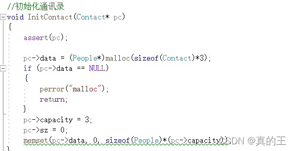 这是一个有关通讯录的代码,我们发现malloc的参数是一个数据的大小与一个变量或者数字相乘得到的,我们就可以根据设定的变量的大小从而来控制开辟的空间大小。
