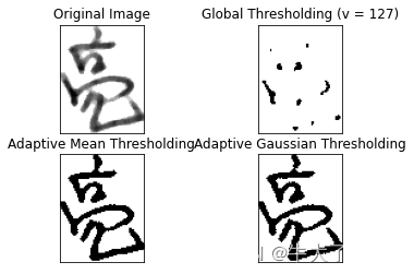 th2 = cv.adaptiveThreshold(img,255,cv.ADAPTIVE_THRESH_MEAN_C,\