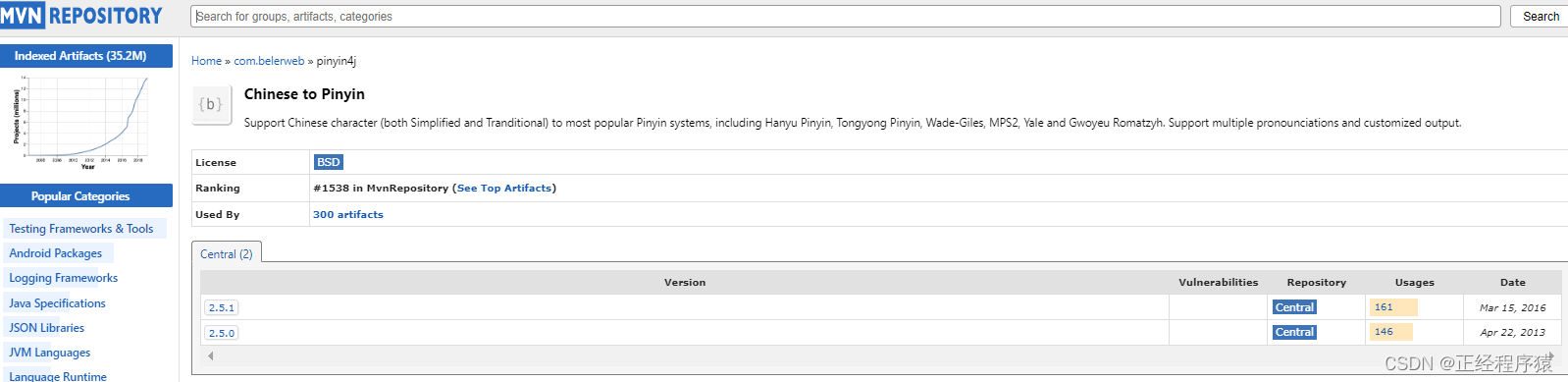 我们使用pinyin4j来实现上述的功能.通过maven中央仓库,下载pinyin4j.