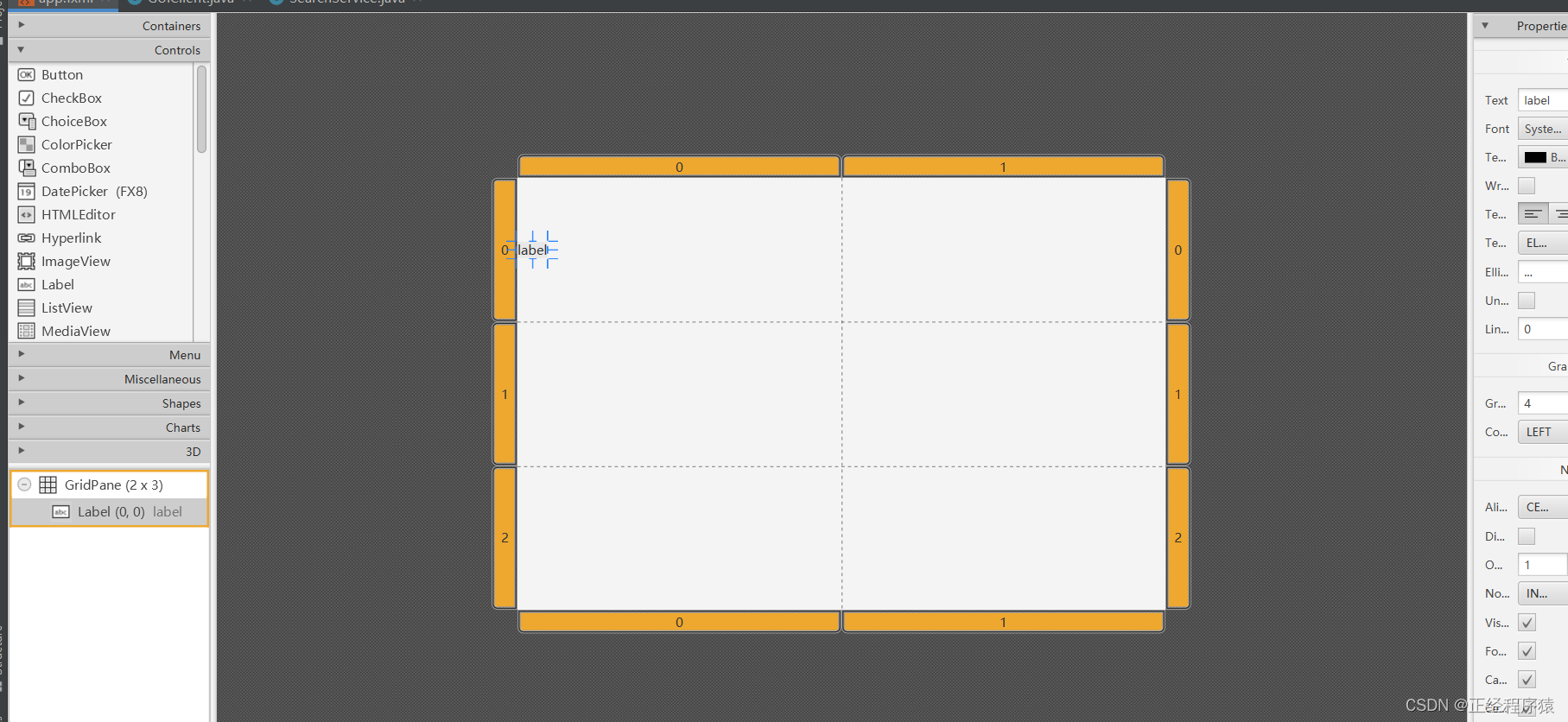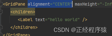 这样编写出来元素组件上下是没有边距的,所以我们在GridPane标签里设置vgap属性,vgap就表示网格里元素的上下边距,.
