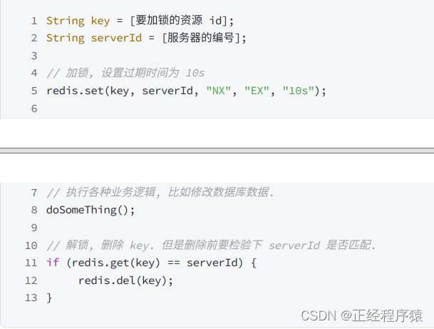 这样就可以在删除key的时候,先校验当前删除key的服务器是否是当初加锁的服务器,如果是才能真正的删除,不是则不能删除.