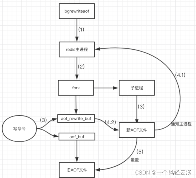 (5)使用新的AOF文件覆盖旧的AOF文件,完成AOF重写。
