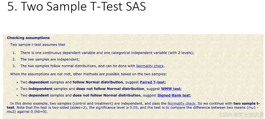 [SAS PROC TTEST 过程用于检验双样本(独立组)SAS t 检验的均值相等性。]