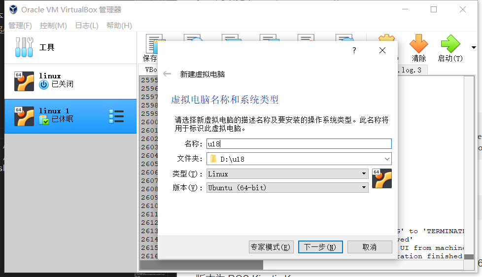 输入虚拟机名称和虚拟机存放的位置,选择虚拟机类型为Linux,选择ubuntu64位版本,进行下一步。