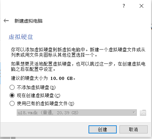 分配虚拟硬盘大小,由于需要安装ubuntu系统,而且还会在该系统中进行操作,建议大小不要低于20G。
