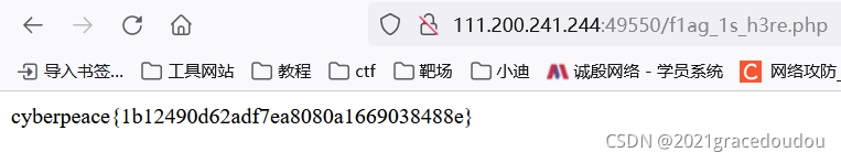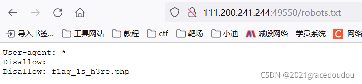 出现disallow,即不允许全体爬虫访问f1ag_1s_h3re.php,按照ctf“不让干啥偏干啥”的传统,那就去访问f1ag_1s_h3re.php看看,果然flag出现