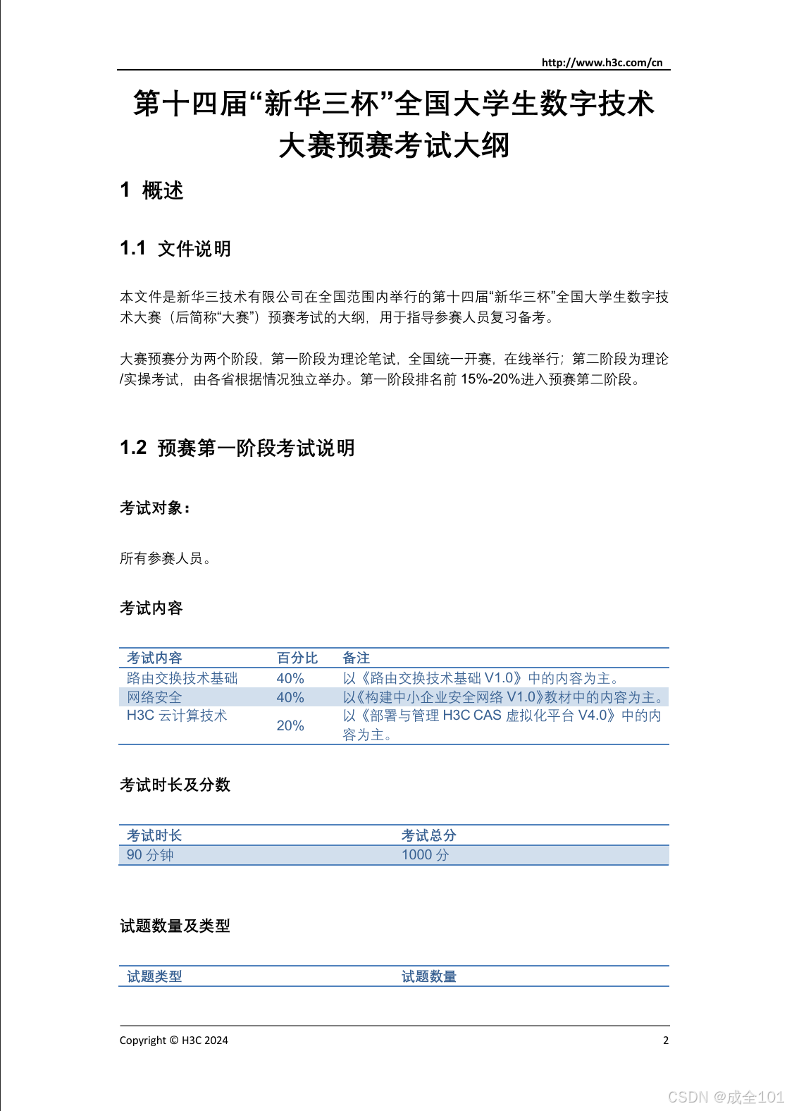 2024第十四届新华三杯预赛考试大纲