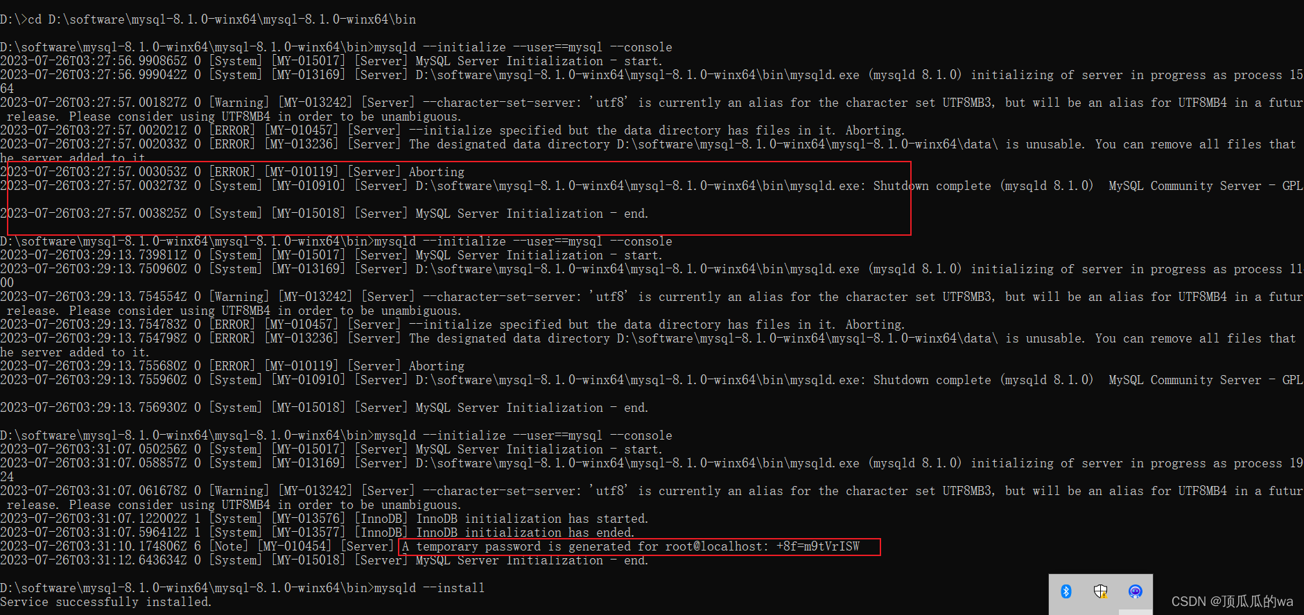 因运行之后,在bin目录下会有data目录,这是新生成的,后期数据都在此,因此,此命令运行不成功,就把这个data目录删了,重新开始运行