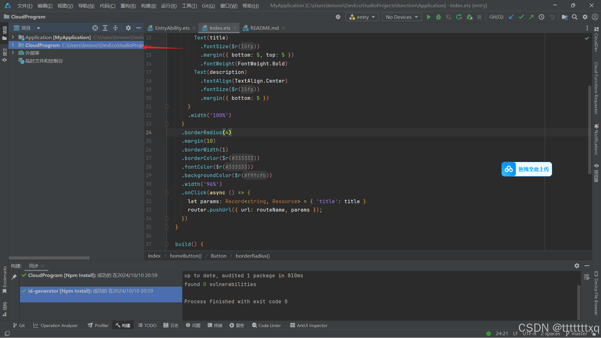鸿蒙端云一体化报错 最近学习鸿蒙端云一体化,在第一步就出错了,正常的项目如下图,但是我的是没有图中这个标着的部分,也就是云侧,但是在文件管理器中是有的,也就是说DevEco Studio把我的工程当成纯端侧工程。
