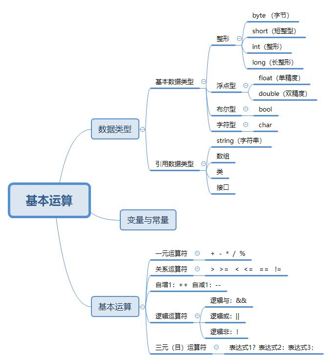 C#基本运算 C#变量:1.指在程序的运行过程中随时可以发生变化的量,是一个供程序 操作的存储区的名字。在C#中,,每个变量都有一个特定的类型,类型决定了变量的内存大小和布局。范围内的值可以存储在内存中,可以对变量进行一系列的操作。C#常量:1.指在程序在运行过程中不会发生变化的量,常量是固定值,程序执行期间不会改变。常量可以是任何基本数据类型,常量可以被当作常规的变量,只是它们的值在定义后不能被修改。类型转换:转换类型:隐式、强制(基本类型)1.隐式:从低到高byte-->sho...