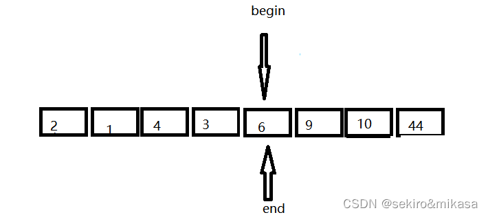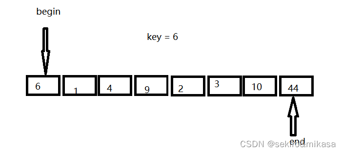 我们定义一个prev和cur,cur是prev的下一个值,我们让cur的值与key的值进行比较,如果cur的值大于key的值,我们就让cur++,prev不动,如果cur小于key,那么我们就让pre++,然后再判断pre与cur是否相等,如果相等就让cur++,然后在进行上述操作,如果不相等,就交换cur与prev的值。