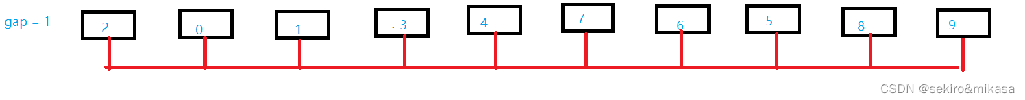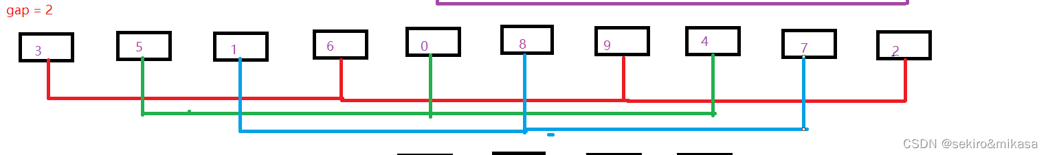 通过划分步长,每次的互相间隔为步长的元素之间进行插入排序,随着步长的减少,数组会越来越趋近于有序,我们就能在步长gap == 1 的时候获得一个趋近于有序的数组,这样在对整体进行插入排序,会杜绝插入排序的时候最坏的情况发生。