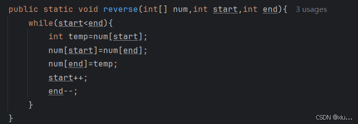 * 给定一个整数数组 nums,将数组中的元素向右轮转 k 个位置,其中 k 是非负数。 * 输入: nums = [1,2,3,4,5,6,7], k = 3 * 输出: [5,6,7,1,2,3,4] * 解释: * 向右轮转 1 步: [7,1,2,3,4,5,6] * 向右轮转 2 步: [6,7,1,2,3,4,5] * 向右轮转 3 步: [5,6,7,1,2,3,4] */