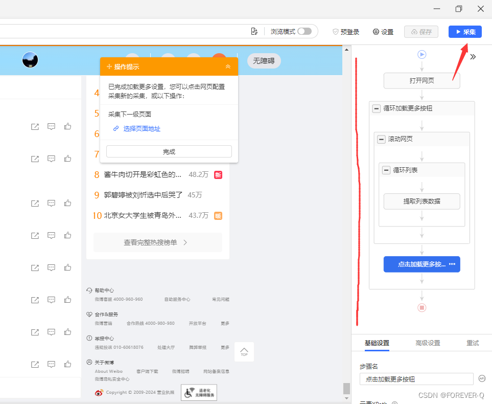 说明:查看右边的流程没有问题后,点击采集。