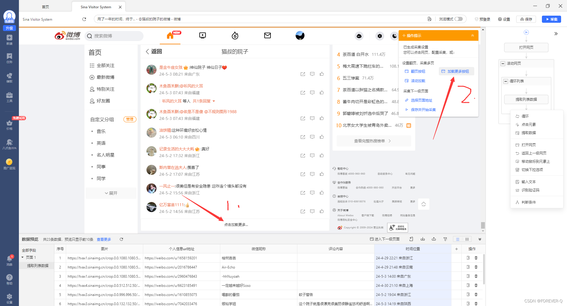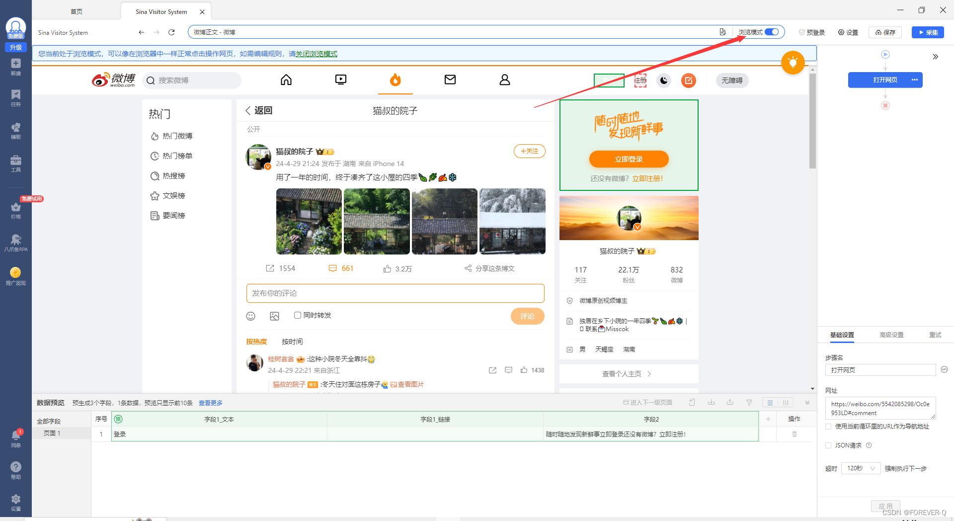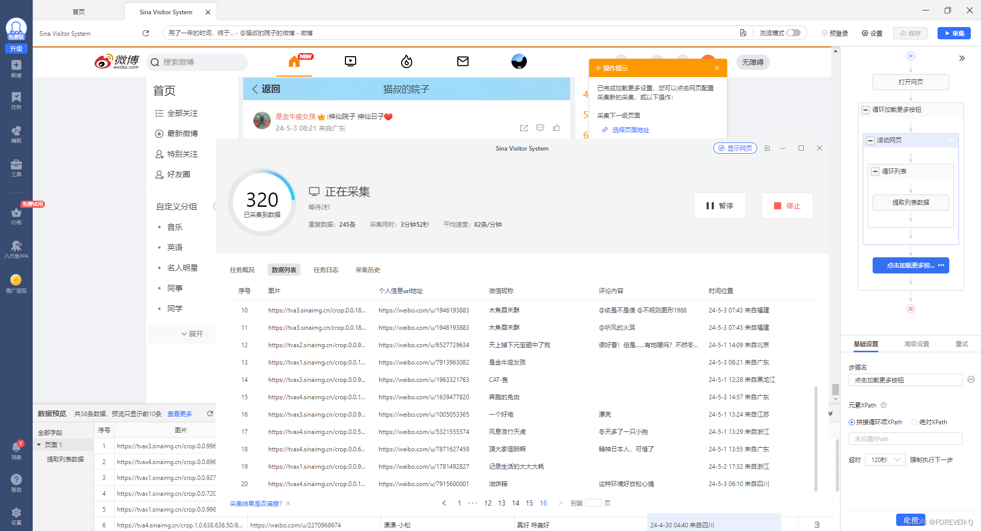 本文介绍了如何通过八爪鱼抓取工具获取微博单条帖子的URL,进行自定义任务设置,登录并保存Cookie保持会话,以及如何调整采集配置、识别网页、生成采集设置、修改字段、添加加载更多功能,最后执行采集并导出数据的过程。