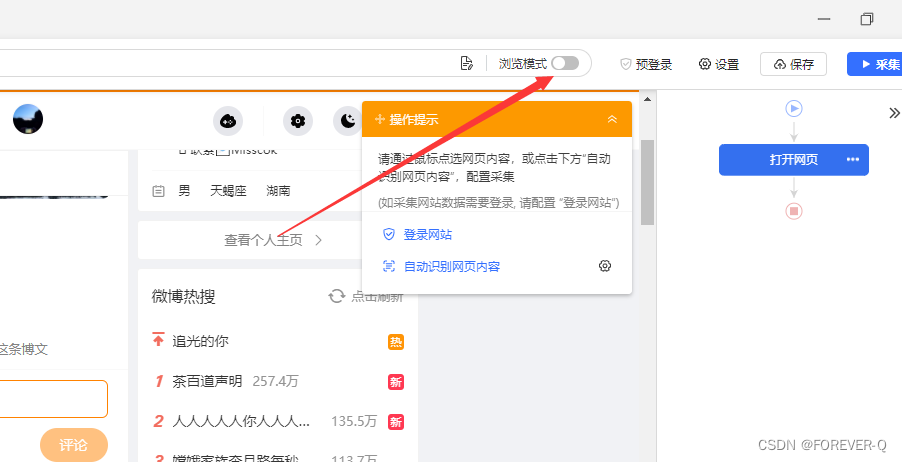 说明:登录的时候需要把打开浏览模式