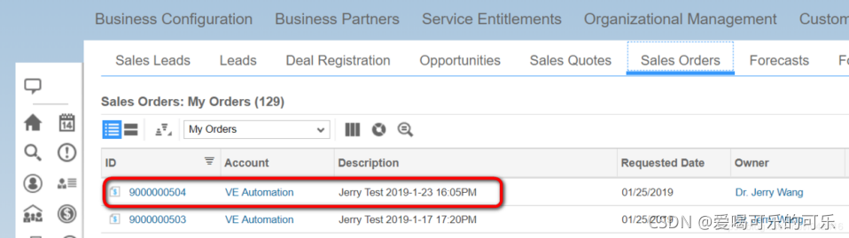 比如销售订单的描述为Jerry Test 2019-1-23 16:05P